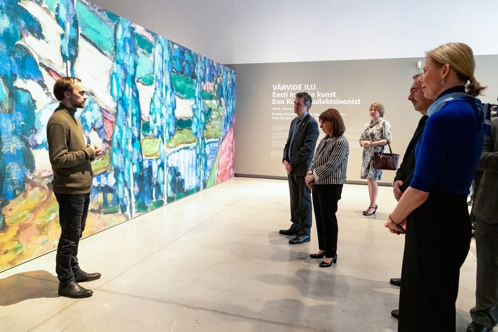 Fotod näituselt „Värvide ilu“, mida Kreeka presidendile tutvustas kuraator Eero Epner. Fotode autor Anu Ansu (ERM).